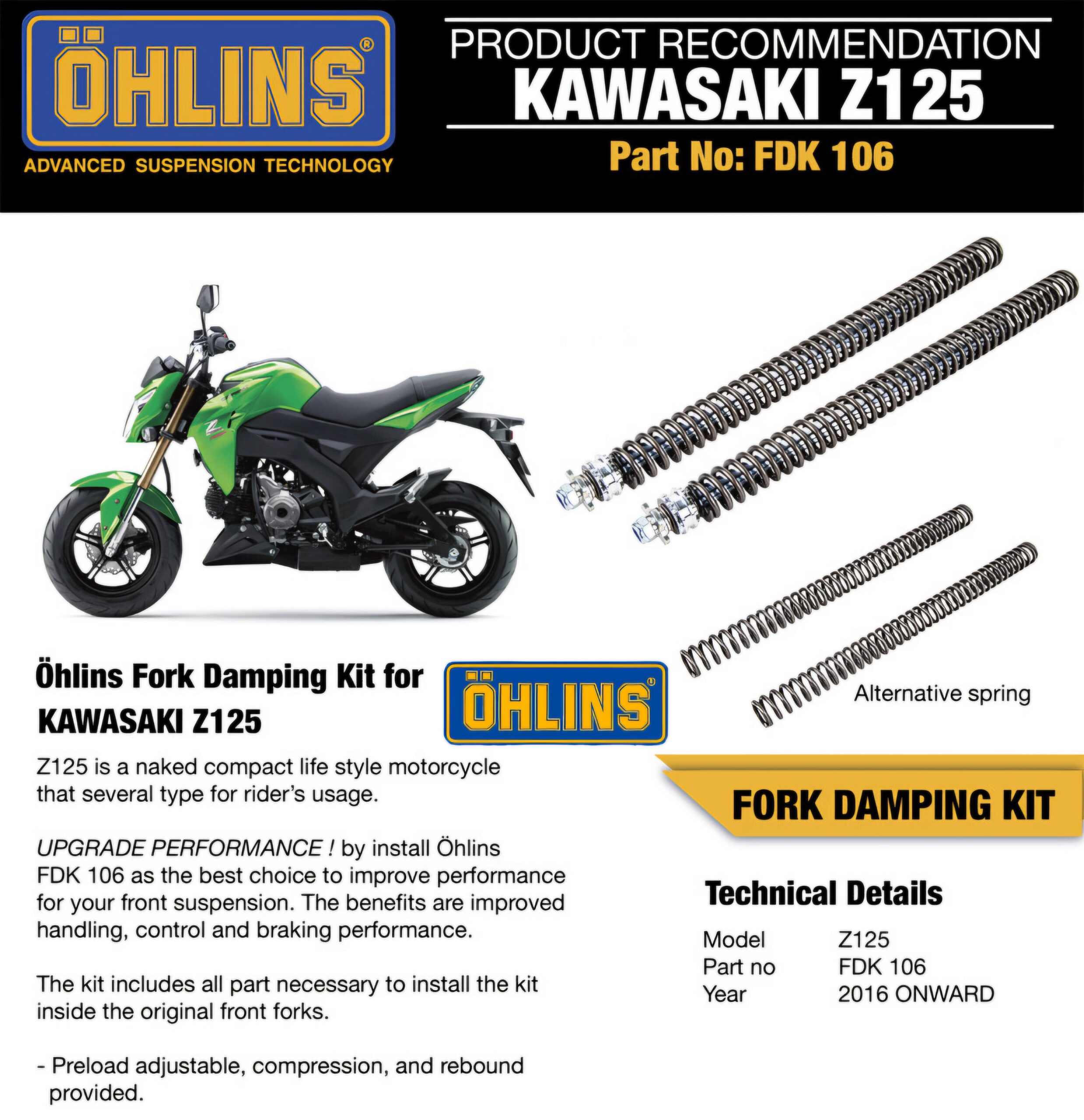 About Ohlins Fork Drop-Ins Kawasaki Z125