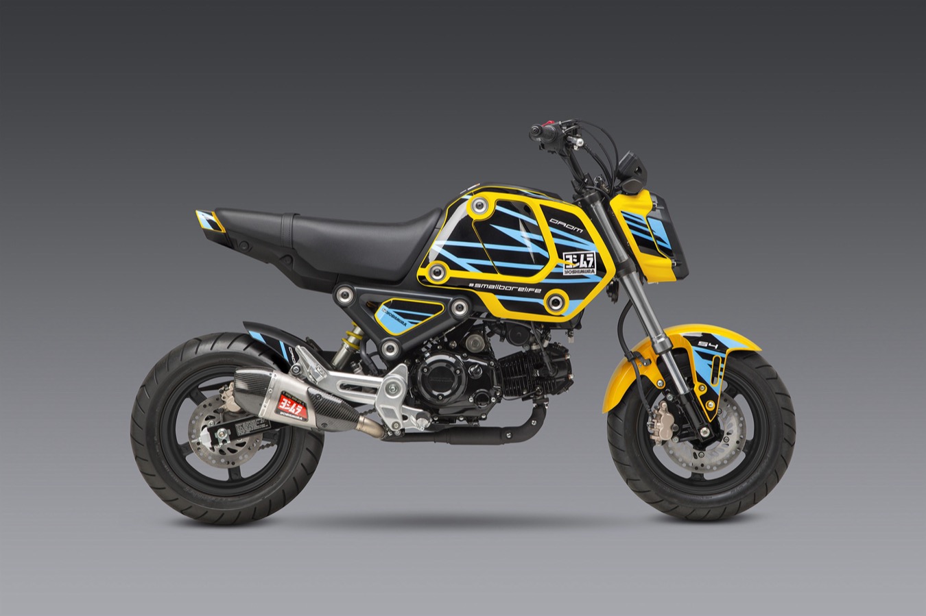 These new Yoshimura graphic kits contain 19 individual decals for the new Grom that are proprietary templates designed by Yoshimura. Made right here in the USA from high performance 12 mil air release material. Using the best materials makes these kits go on super easy.